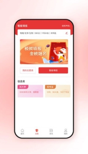 依托海量院校及专业历年录取大数据,再结合考生的高考成绩与志愿偏好,为考生提供量身定制的高考志愿模拟推荐服务。