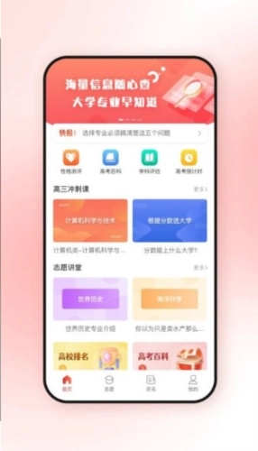信息查询:为考生提供国内高校、专业及职业的详细资讯,助力其提前知晓意向院校情况、专业基本概况,以及未来职业的发展前景和所需技能要求。