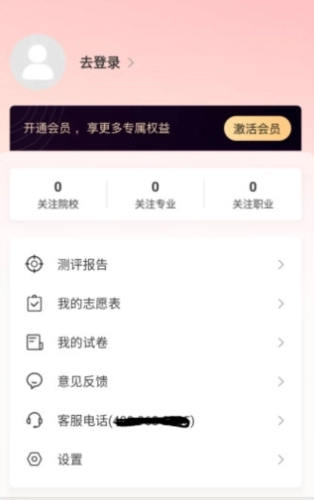 在我的页面里,测评报考、我的志愿、我的试卷等内容都清晰易懂,能更好地帮助我梳理和概括自己的信息。