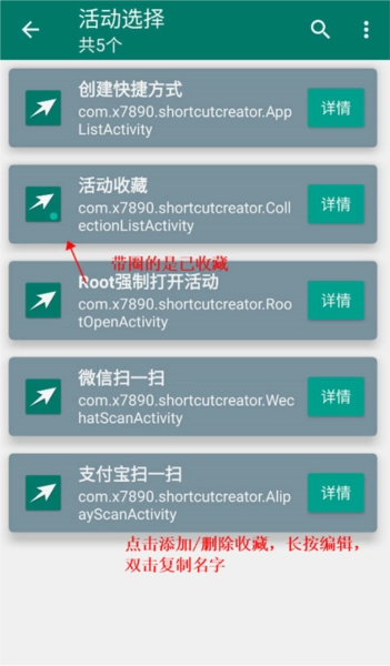 这里就能设置快捷方式的名称、包名、活动等各项内容。