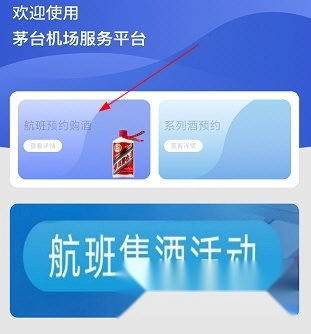 进入茅台机场的首页,点击“航班预约购酒”。