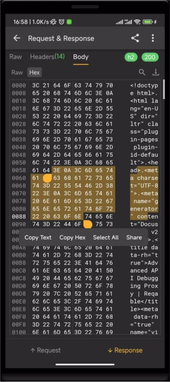 Hex视图:以Hex的形式查看请求/响应体内容;