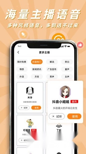 南瓜配音是一款优质的手机配音应用,旨在帮助用户更轻松地开展配音创作。用户借助这款软件,能够获取海量配音素材,各类有趣的语音包均可使用。每个语音包都独具风格,用户还能快速切换,让内容制作更加便捷。该软件提供了多种不同风格的声音供用户随意挑选,还有大量主播配音可免费使用,更有多种情绪选项供您选择,能帮助用户精准、实时地将文字转换为语音,适用于短视频配音、宣传片配音、节日特卖、美食餐饮、超市烟酒、家电卖场、有声朗读等多种场景,众多行业文案模板任您选用,并且可以搭配背景音乐进行录制,让您轻松配出好声音,有需要的话就来使用吧。