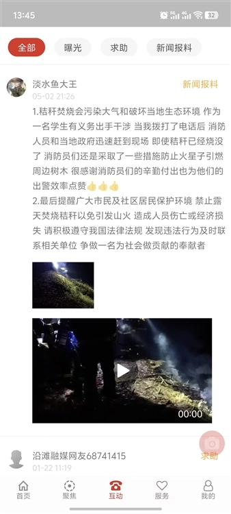 打开软件的首页后,点击底部导航栏里的互动选项,接着在页面中找到“我要报料”的入口并点击它。