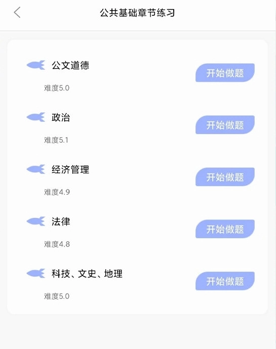 进入“题库”板块后,可选择“行测”“公共基础”“公安专业”等科目进行操作。