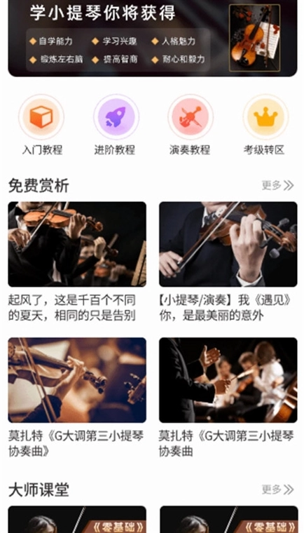覆盖小提琴学习的整个周期,从启蒙阶段到专业演奏水平,不用切换多个应用就能完成知识积累和技能提升。