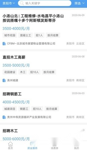 智慧劳务仅需关键字就能筛选,借助多个条件便可快速筛选职位。
