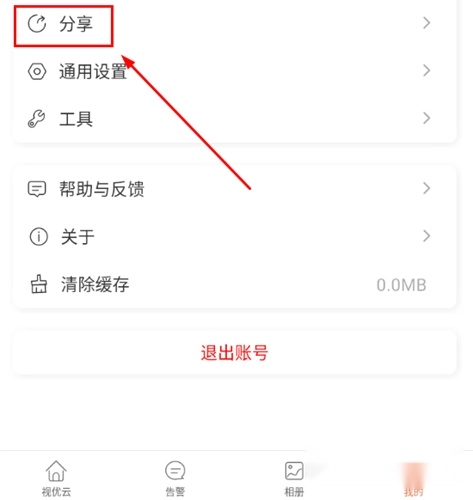 在视优云的“我的”功能界面选择点击“分享”功能。