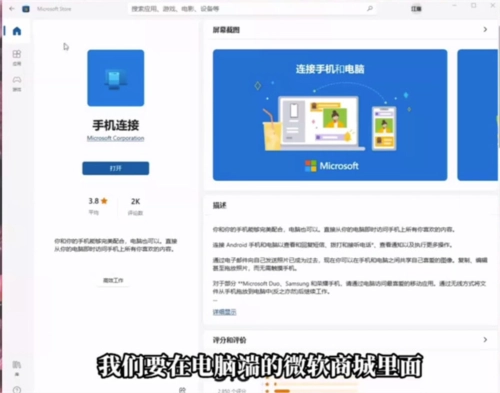 首先我们需要在电脑端的微软商城里找到“手机连接”或“你的手机”助手,接着将其打开。