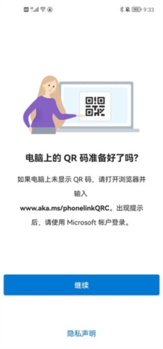 此时可以打开手机上的“连接至Windows”功能,选择用二维码来完成匹配操作。