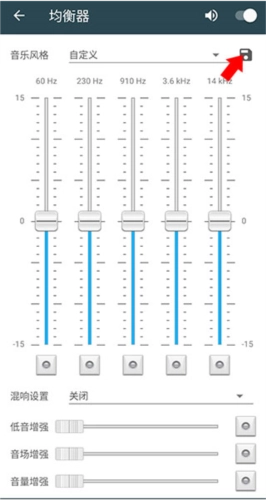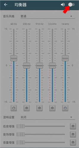 进入均衡器界面后,默认处于关闭状态,此时界面呈灰色且无法操作,需点击右上角的启用按钮来激活。