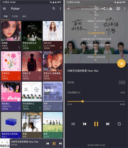 脉冲音乐播放器在歌词支持方面表现不错,不仅能实现动态高亮显示,还不会出现连时间戳都显示出来的问题。
