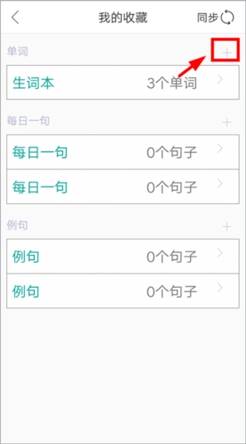 “我的收藏”中包含“单词”“每日一句”以及“例句”这几项内容。