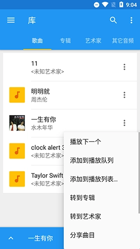 播放队列——支持添加文件夹或专辑至播放队列,也可对单个曲目进行添加或删除操作。