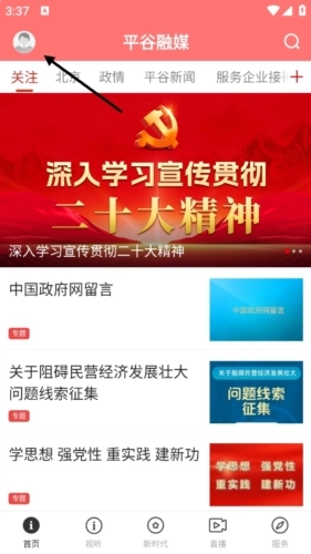 首先用户可以选择在本站下载最新版的平谷融媒应用,打开应用后点击页面左上角的个人图标。