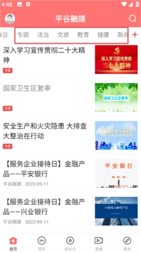 安装完成后打开应用,首页设有新闻、政情、专题、法治、教育、健康等多个板块。