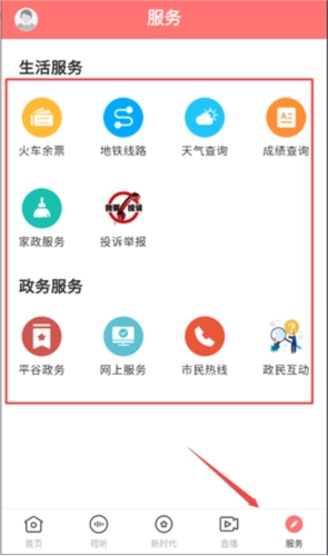 点击下方的“服务”选项,即可使用天气查询、成绩查询、实名热线等便捷服务功能。