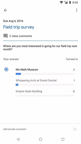 借助Android版移动应用,学生和教师能够查看对应课程,同班同学之间也可以实时进行沟通交流。学生可以直接用手机或平板电脑打开作业并完成作业。教师无论在校内还是校外,都能随时随地查看已提交作业的人员,并对作业进行评分。当“课堂”里有新内容更新时,学生和教师都会收到通知,以便及时了解最新情况。