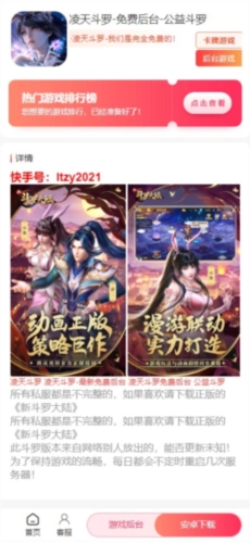 个性化推荐:该软件配备智能推荐系统,可依据用户的游戏偏好及历史使用记录,精准推送契合其兴趣的游戏与相关内容。