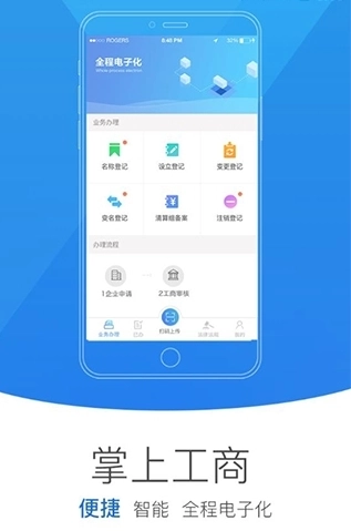 企业登记申报的“网上用户注册、信息填报、电子签名、提交审核、执照领取”等环节均通过互联网直接办理。工商部门依托业务内网对申请人提交的电子材料进行审查,实现“网上核准、执照发放、材料归档、信息公示”。