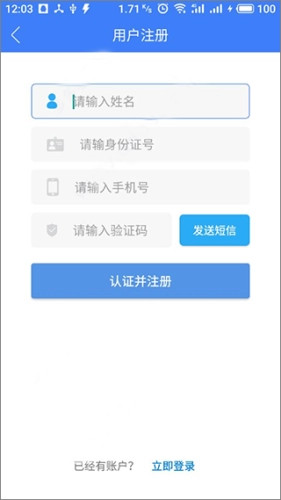 打开河南省掌上工商应用,点击“立即注册”按钮进入注册界面。该平台注册用户不区分个人与企业类型,仅需通过姓名、身份证号、手机号及验证码即可完成注册流程。