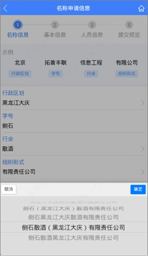 在完成“行政区划”“字号”“行业”“组织形式”这些信息的录入后,你可以点击“合成结果”按钮,从中挑选出所需的企业名称结构,具体可参考下方图片。