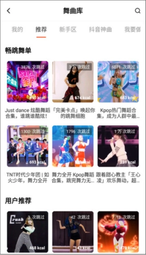 点击搜索舞曲库,就能看到不少潮流舞蹈啦,你想跳哪一首呢?