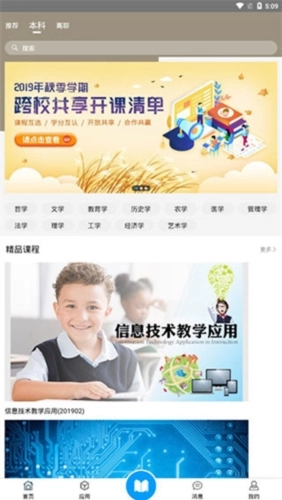 软件主界面的上方设有多种课程类型供选择,像本科课程、高职课程、成人初中等,你只需挑选其中一个模块并点击进入即可。
