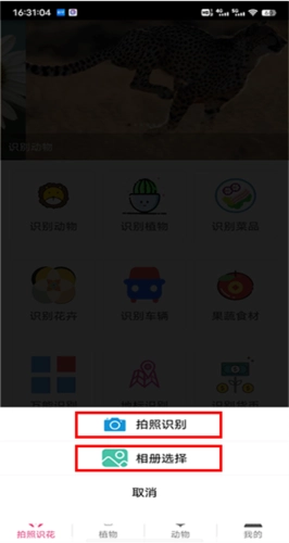 按自需选择拍照识别或者相册选择图片进行识别;