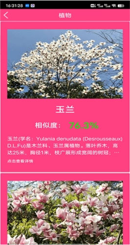 一键识别后能够轻松获取花的各种信息;