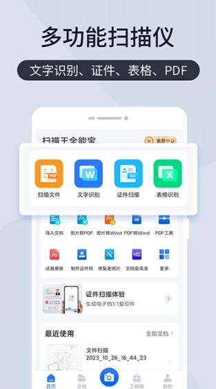 全能扫描王又名扫描王全能宝,是一款功能强大的扫描软件,该软件应用先进的图像辨认技术,可以将书籍、名片、照片中的图片文字辨认提取出来,还能将辨认结果翻译成多国言语,包括:中文、英语、日语、法语、德语、俄语、葡萄牙语、西班牙语、意大利语等,也能够快速的扫描文档,照片等各种文件,将他们直接转成PDF格式保管或打印,并且还可以将文档轻松分享到邮箱、微信好友、网盘等平台。全能扫描王帮助你轻松管理文档,给你不一样的工作体验,让你的工作变得简单高效,是一款不容错过的扫描工具!