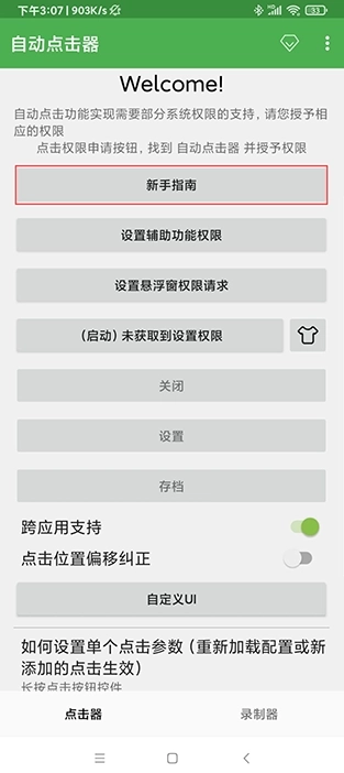 5、找到“自动点击器”,也是默认关闭的,需要开启;