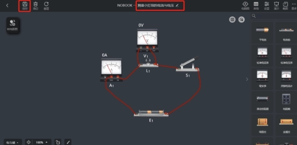 4.点击标题可以修改实验名称,将实验保存为对应的名字,点击“保存”实验,即可将实验保存到个人资源当中