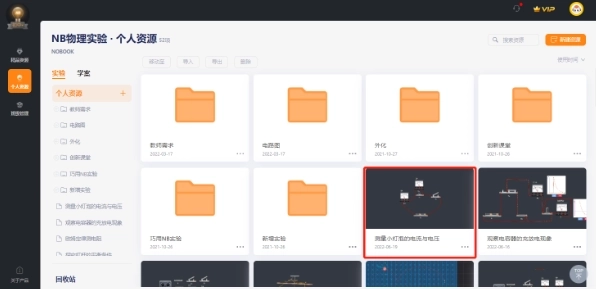 1.在左上角选择对应的学段,点击右上角的新建资源,选择对应的模块,即可进入到相关的实验界面,以物理电与磁模块为例