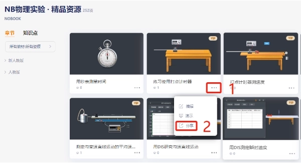 ①直接在精品资源页面,点击相应实验的“ · · · ”,点击“分享”