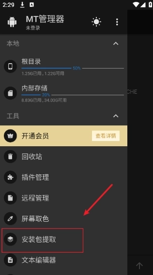 2、然后选择安装包提取。