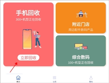 1、软件打开后,在首页点击“立即回收”。