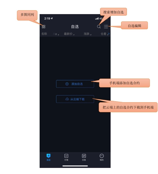 支持手机端的自选合约上传覆盖到云端,云端上的自选合约下载覆盖到手机端。
