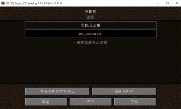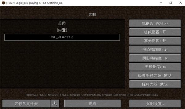 3、导入后打开游戏,在光影设置界面中可以看到导入的光影包