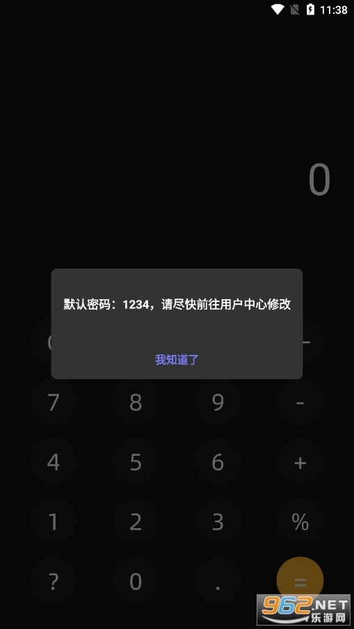1. 在本站下载 VTalk 通讯加密技术 app 并打开,进入后输入默认密码 1234 ,接着点击“=”号,继续后续步骤操作。
