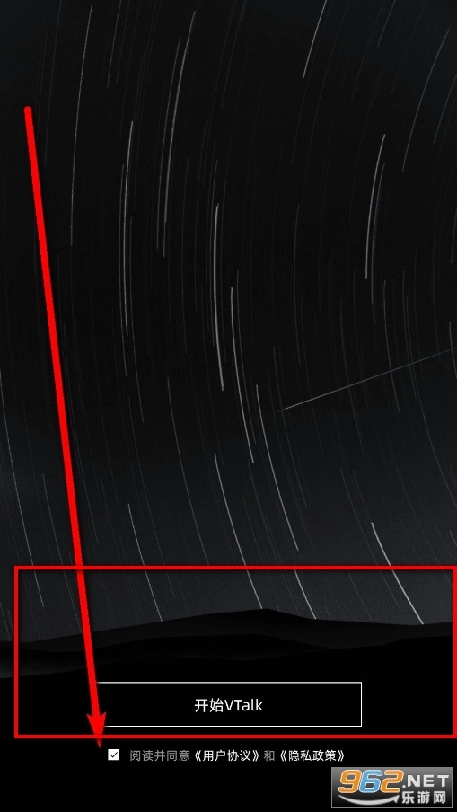 2、完整 阅读 并同意《用户协议》和《隐私政策》后,开始VTalk。
