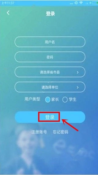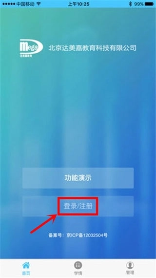 1、下载并打开学情达app,点击登录/注册按钮。