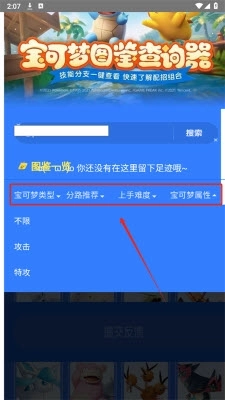 3.还可以根据宝可梦的类型、属性等关键信息,进行查询;
