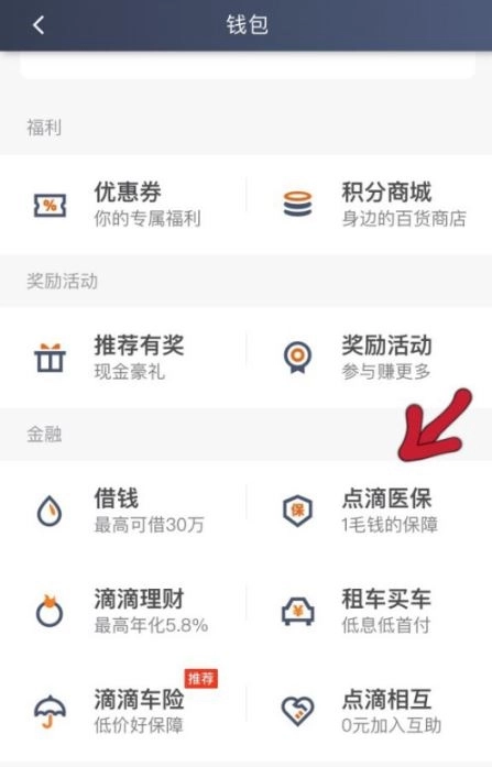1、打开软件,选择钱包找到点滴医保