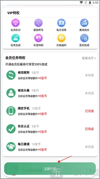 3、想知道VIP会员享有哪些特权以及各类交易福利吗?只需按住下方的“立即开通”按钮,就能充值成为会员。