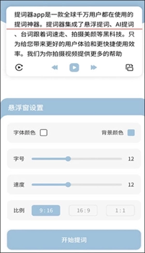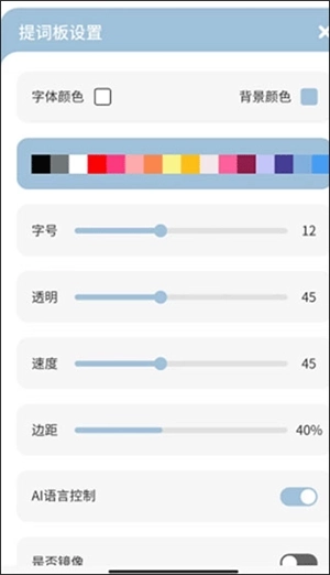 2、提词板模式设置:支持全屏提词、Ai智能语音提词、横屏旋转、字体及背景颜色调节等