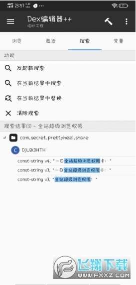 2.用dex++全选dex,搜索代码"全站超级浏览权限"