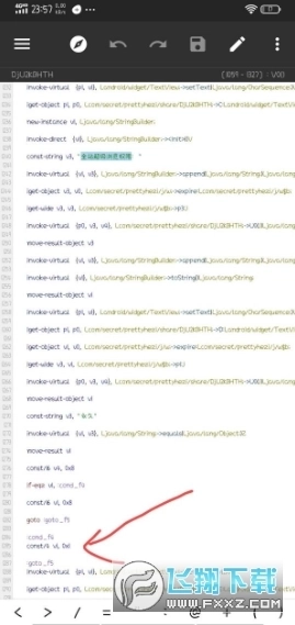 3. 点击搜索到的以下内容,接着向下翻至1285行,把“const/4 v1, 0x0”修改为“const/4 v1, 0x1” 。