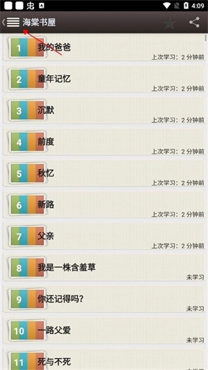 1、打开海棠书屋,点击左上方的四道横杠