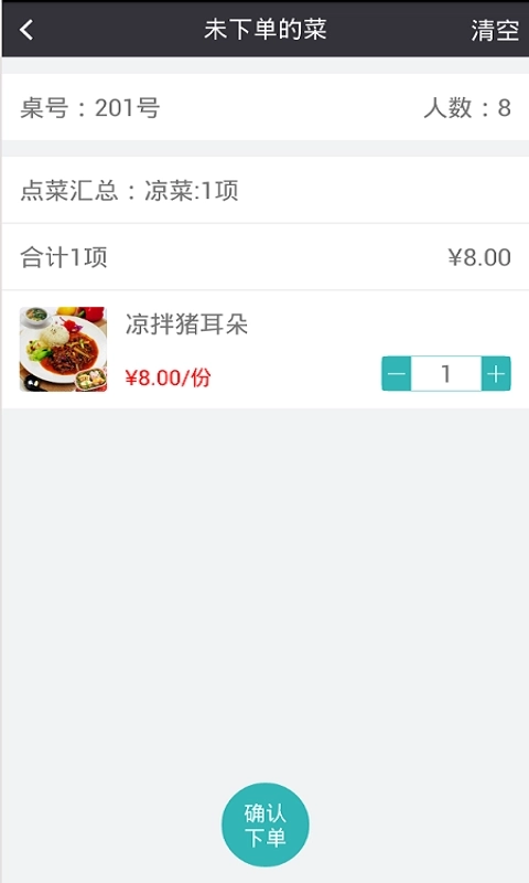 4、顾客点完菜后,服务员需对订单进行确认,保证所点菜品准确无误,同时可查看订单详情。